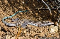 Its lack of spots distinguishes this lizard from many whiptails. Its distinctly blue tail coloration distinguishes it from the similar looking Desert Grassland Whiptail. |