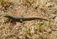 This lizard actively forages by rooting around in organic matter under bushes and by digging in the soil around the bases of rocks, logs, and other surface debris. It has also been observed to forage in low shrubs off the ground. It feeds on a variety of insects and spiders. |