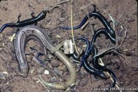 This ground-dweller is active during the day but most activity occurs under surface cover or on moist overcast days. When spotted it can be quite difficult to capture as it quickly slides and zigzags through the grass, rocks, or surface debris. It is capable of casting off (and regenerating) the tail. Pursuers and predators often end up with nothing but a wiggling tail. |