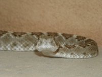 The largest rattlesnake in New Mexico, it can obtain lengths in excess of 4 feet! The pattern consists of diamonds along the back. The base color of the snake varies and can be red, copper, brown, gray, etc. The tail is banded black and white and tipped with a rattle. Various morphs have been found including: amelanistic (albino), melanistic, striped and patternless. Some of these morphs can be seen at the Rattlesnake Museum. There have also been some cases of hybrids with Crotalus viridis or a viritrox |