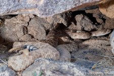 These snakes hibernate in communal dens. They often hibernate with other species including, but not limited to: Coluber flagellum, Coluber taeniatus, Pituophis catenefir and Crotalus viridis. They hang around the den in early spring and late fall. A few individuals in western Bernalillo County were observed in the fall with huge food lumps in them. They took a few months to digest the meal, defecated and then retired into the den. They will come up to bask on warmer days during the winter. One was observed on December 29! In some portions of their range, they may not even hibernate. Hibernacula include, but are not limited to: rock crevices, culverts, broken up concrete piles, etc. |