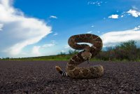 Mainly nocturnal, but can be found basking during the day. They can get fiesty when encountered. One was encountered on the road and remained calm while it was photographed, but then went into a defensive posture! So, don't expect them to act the same even on the same encounter. Diamondbacks will rear up in a defensive posture and raise up off of the ground. |