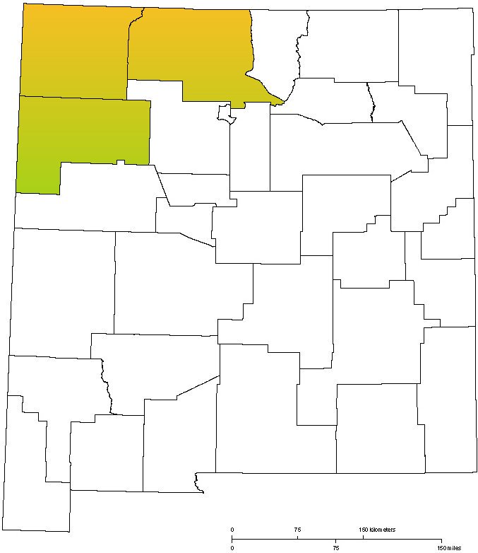 Found in the northwest corner of the state except in the highest of mountains. They integrade with the Sonoran Gophersnake and the Bullsnake. |