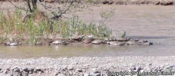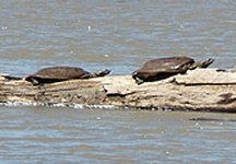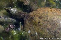 Diurnal. Thoroughly aquatic, but basks out of the water. Active most of the year, becoming dormant in cold temperatures. Often remains hidden underwater with the snout extended up to the surface to breathe. Turtles sometimes leave the water to search for food, a better place to live, a mate, or to lay their eggs in the spring - typically from March to June. If you see a turtle walking on the land, it is probably not sick or lost, so the best thing you can do for the turtle is to leave it alone. Some people want to help a turtle they think is in danger by picking it up and bringing it home or to a wildlife rehabilitation center, but most of the time this harms the turtle by removing it from the wild without reason. Sometimes turtles do get lost or stranded in yards or on busy roads or somewhere where they may be in danger. If you find one in such a situation, it's ok to move it out of danger, but it's best to leave it in a safe place as close to where you found it as possible. Difficult to approach, moves very fast on land and in the water. Capable of scratching vigorously and producing a painful bite if handled. |
