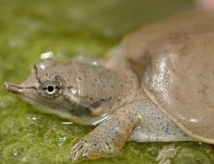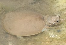 The Smooth Softshells lack spines, bumps or sandpapery projections on carapace and don't have ridges on nostrils. |